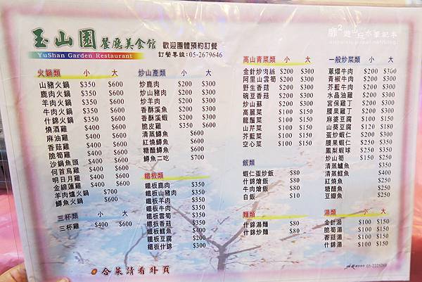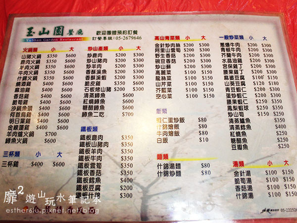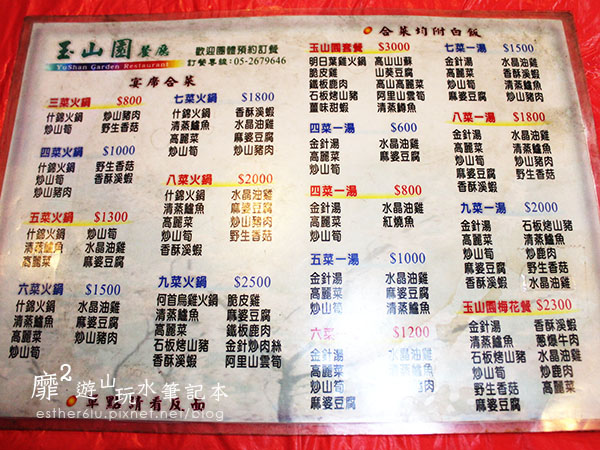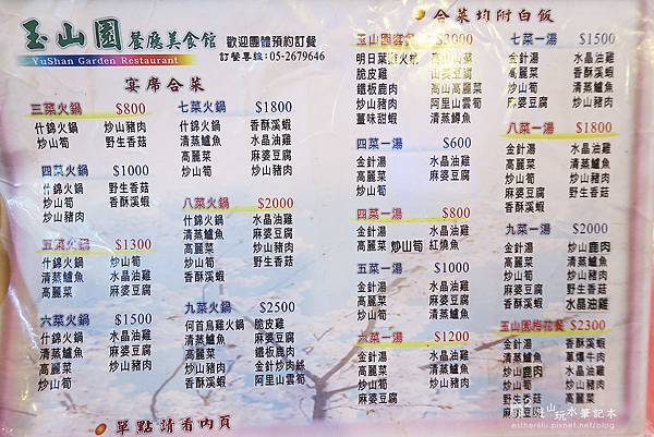 玉山圓餐廳的菜單~